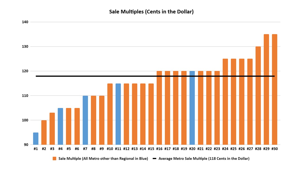 1. Practices are selling for an average of 118 cents in the dollar (metro) and 109 cents (regional)